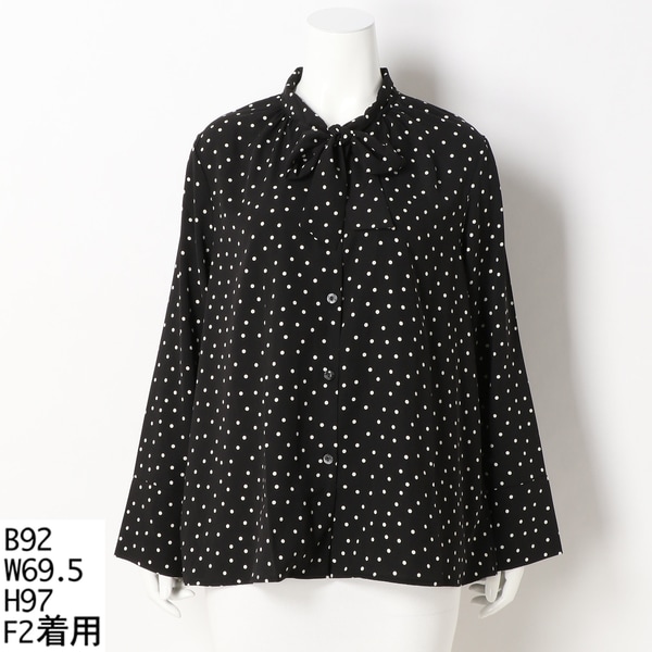 黒ドットリボン長袖ブラウス 4L