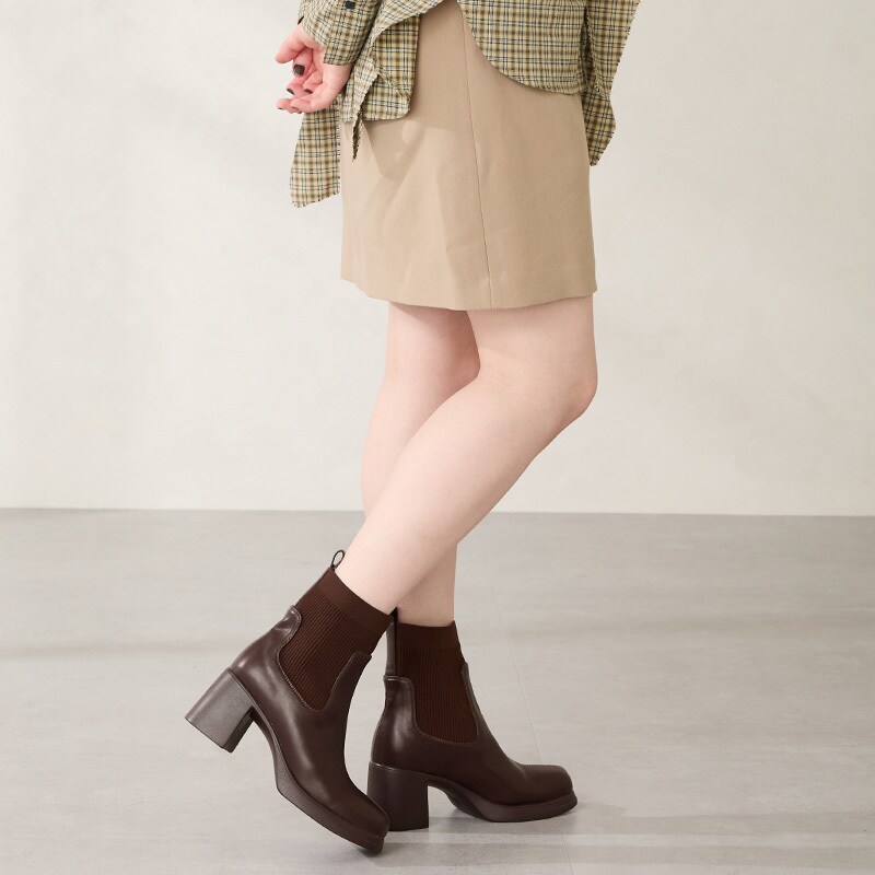 トレンド継続中の無駄のないシンプルなニットブーツは、足まわりに優しくフィットする1足。