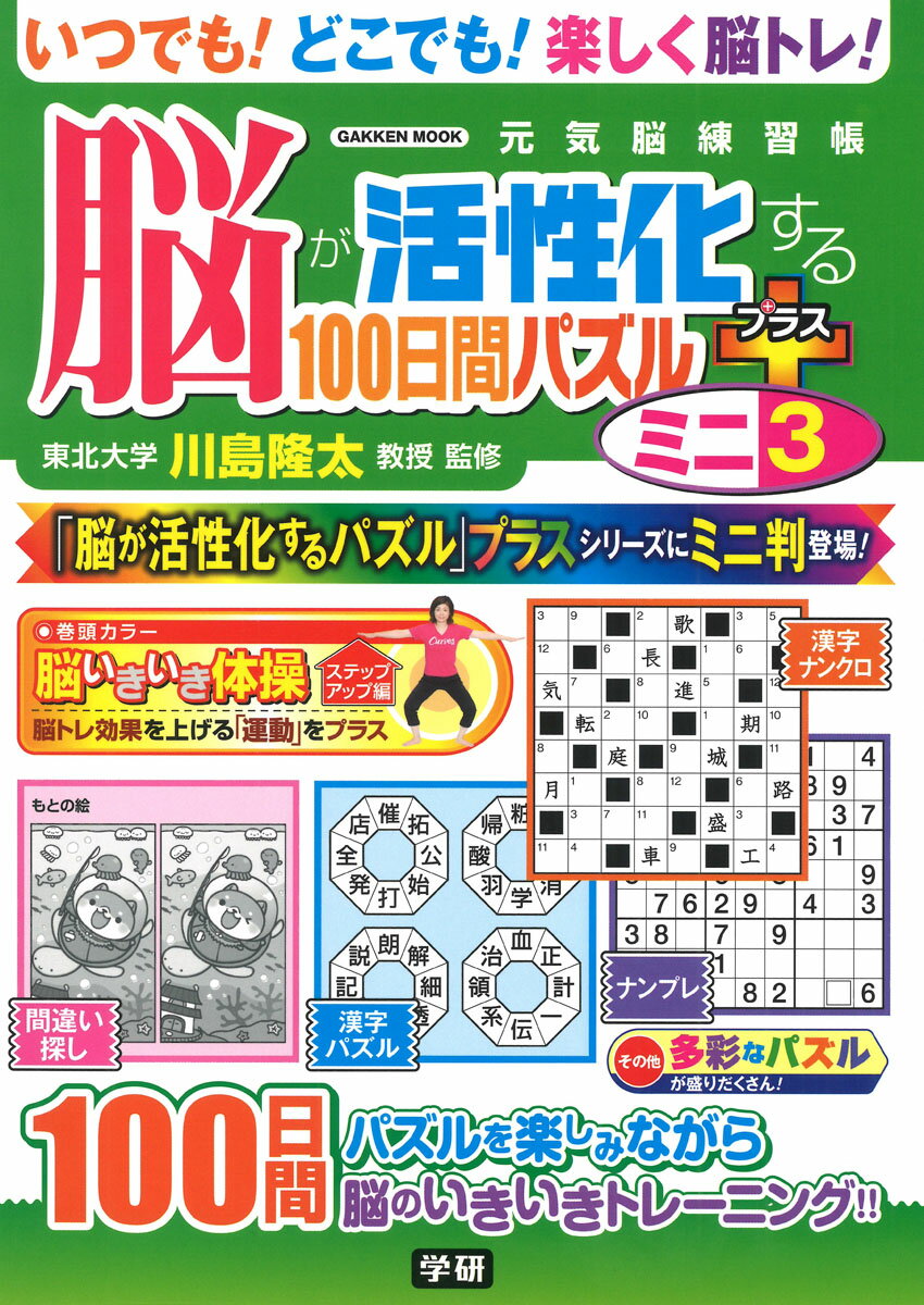 ★★ロングセラー「脳が活性化するパズル」シリーズのミニ判最新刊★★ーーーーーーーーーーーーーーーーーーー・ミニなのに本格派。いつでも!どこでも!楽しく脳トレ!・脳トレの第一人者、東北大学川島隆太教授・監修・人気のパズルを100日間分収録●脳の活性化に効果があるパズルを100日間分収録クロスワード、ナンプレ、間違い探し、漢字ナンクロ、不等号ナンプレ、漢字パズルなど、掲載パズルはいずれも誰もが知っているポピュラーなものなので、パズルを解きながら100日間、楽しく脳トレに取り組めます。●いつでも! どこでも! 気軽に脳トレできるミニ判サイズ本書は従来のB5判よりひと回り小さいA5判とコンパクトなサイズ。気軽に持ち運べ、いつでもどこでも楽しく脳トレに取り組めるようになっています。●ココロもアタマもカラダも元気に! 脳いきいき体操の第3弾をプラス従来のミニ判シリーズに巻頭カラーポスターをプラス。パズルに加えて、ポスターで掲載しているココロもアタマもカラダも元気になる脳いきいき体操に取り組むことで、さらに脳トレ効果がアップします。今号では、その第3弾として、新たに2つの体操を紹介しています。