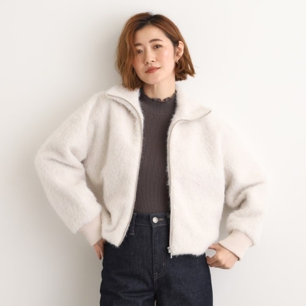 ふんわりとした素材感がシーズンムードを高め、アウターとしてスタイリングに存在感を与えます。