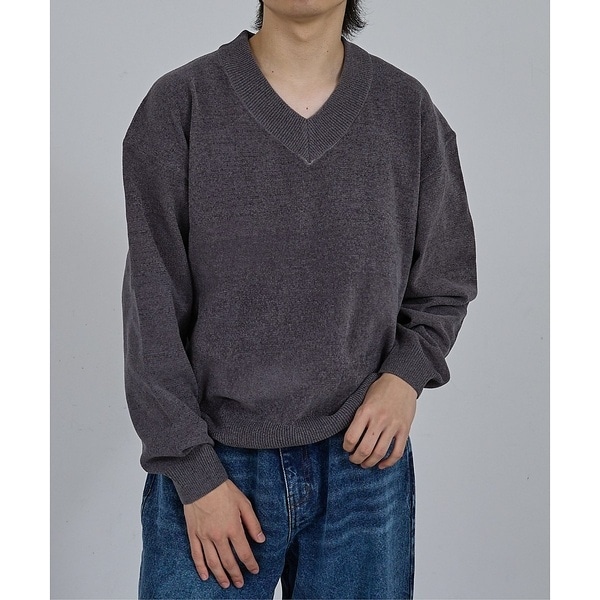 柔らかな風合いと上品な光沢をもつハイゲージモール糸で仕立てたクロップドVネックニット。