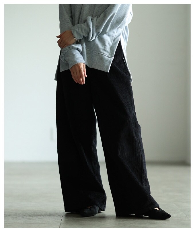 ウエスト&裾ゴム★細コーデュロイ生地アラジンパンツ★M-L/ブラック