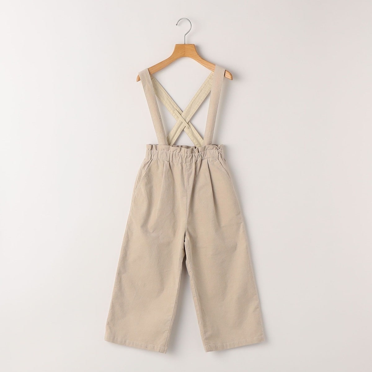 あたたかみのあるコーデュロイ素材を使用した肩紐付きワイドパンツ!