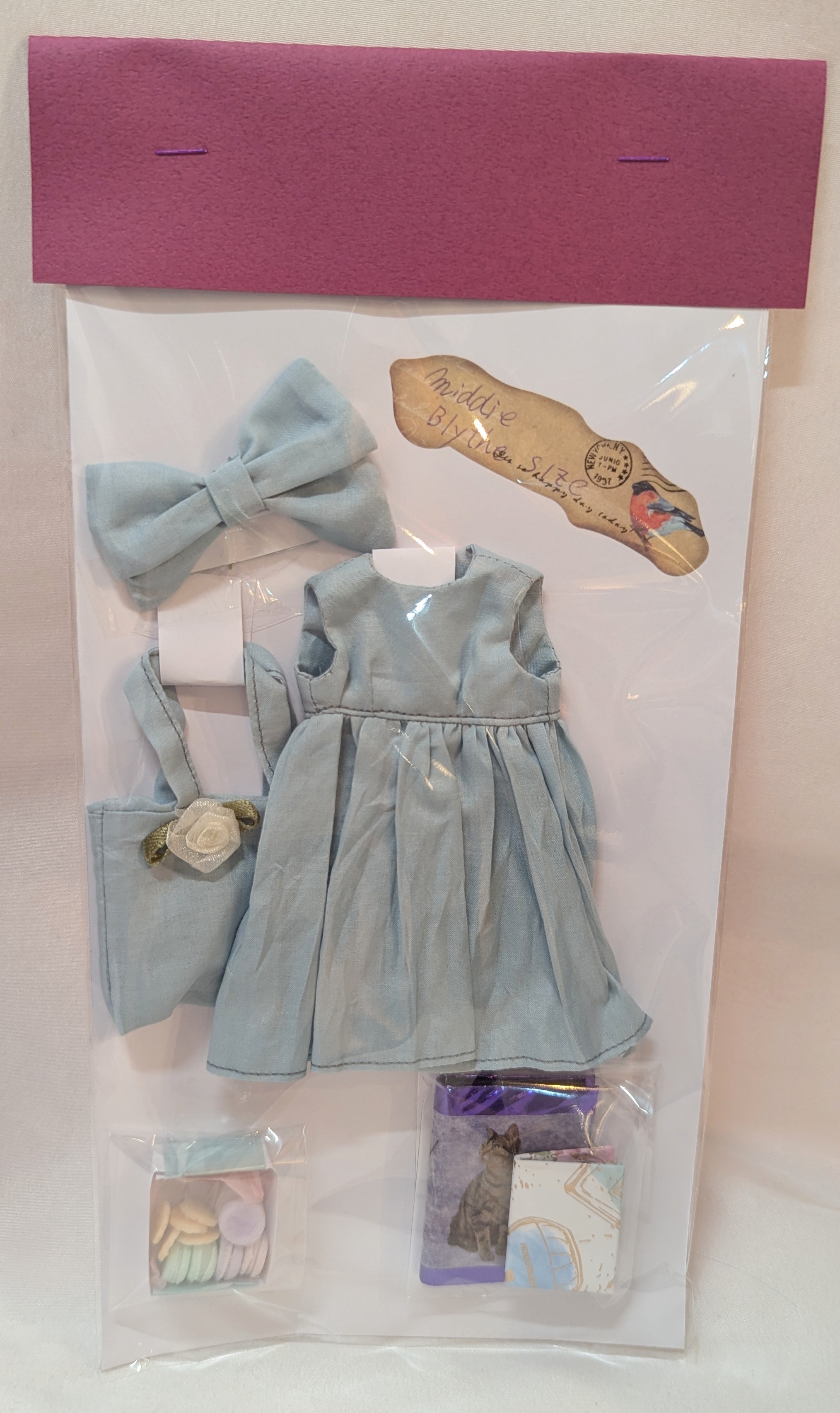 ドール衣装 20cmサイズ(ミディブライスなど) 水色系ネコミミアウトフィット