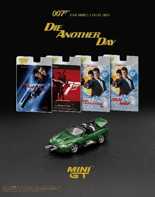 1/64スケールで新旧スポーツカーやレーシングカーを精密にモデル化しているMINI GTの新作として、待望の「ジェームズ・ボンド」シリーズ、【007】から新たに1車種ラインナップ!今回題材となったのは、007の20作目にあたる「ダイ・アナザー・デイ」に登場した「ジャガー XKR」。シリーズ40周年&通算20作を記念して作られ、ピアース・ブロスナンがジェームズ・ボンドを演じた最後の作品です。ボンドの敵であるザオが運転し、消えるボンドカーも探知できる熱映像を映し出すモニターや、車体のいたるところから発射されるミサイルでボンドを追い詰めるシーンは迫力満点。氷の上で映えるグリーンカラーが目を引く1台です。こちらは、当時映画館に飾られていた、オフィシャルポスターがプリントされた、ドイツ語版パッケージデザインとなります。パッケージサイズ: 約 W140 x D50 x H195 (mm) 素材:ダイキャスト製Prototype Sample-Approval Pending 版権元監修中、写真はサンプルのため実際の商品と異なる場合がございます。※本案内に記載のパッケージサイズや素材は予告なく変更される場合がございます。予めご了承ください。※メーカー都合により大幅な発売延期や発売中止が発生する場合がございます。予めご了承ください。・ホビー系商品についての諸注意メーカー都合により発売の大幅な延期が発生する可能性がございます。予約商品についてはメーカーから順次入荷次第の発送となります。メーカー公表の発売日とは異なる場合がございますのでご了承ください。【対象年齢】: