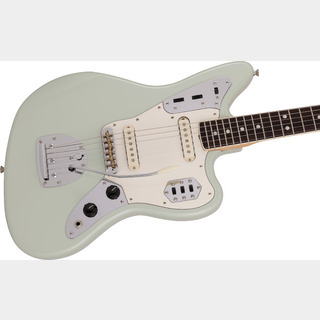 羊文学の塩塚モエカが長年愛用しているAmerican Vintage ’65 Jaguar®をベースに、彼女のこだわりを再現したシグネイチャーモデルが誕生しました。エイジングされたソニックブルーをイメージしたオリジナルカラーに加え、水張りデカールを採用することで、ヴィンテージギターのような風格を演出しています。
