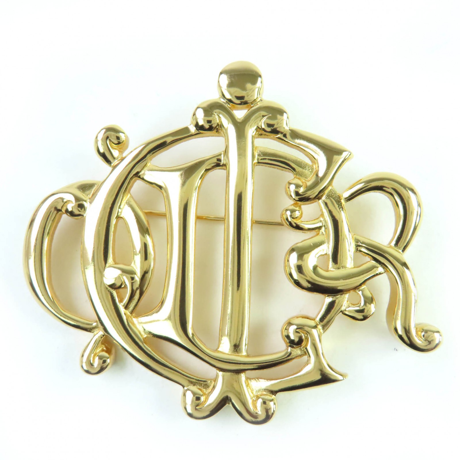 【極美品】Christian Dior クリスチャンディオール ブローチ ロゴ エンブレム ゴールド ラインストーン ヴィンテージ【送料無料】