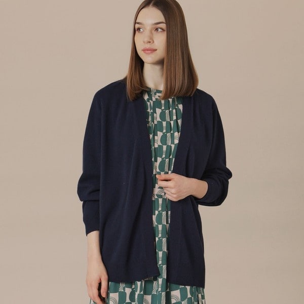 身体を包み込む、丸みのある肩のラインで柔らかな印象のカーディガンです。ヒップまで隠れる着丈にゆったりとしたシルエットでコーディネートに抜け感を演出するアイテムです。
