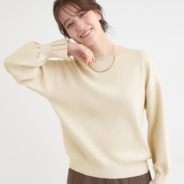 【S-LL】大人のデイリースタイルに お袖タック フェイクパール付きトップス