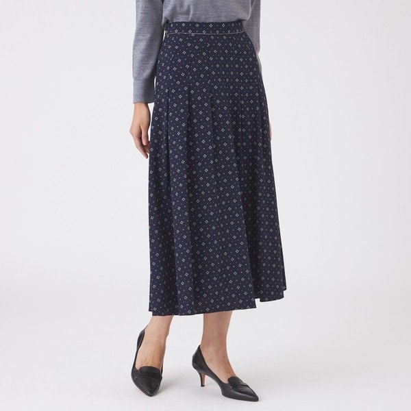 シルエットの美しいタックフレアースカートです。お腹まわりは膨らみすぎないようタックを中縫いしています。