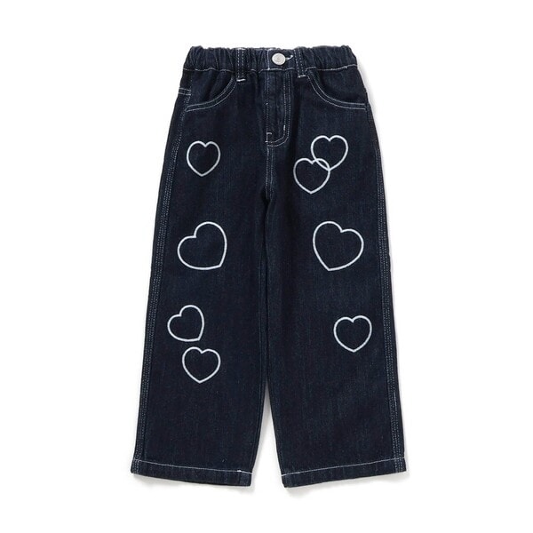 【130-150cm】刺繍使いワイドデニムパンツ