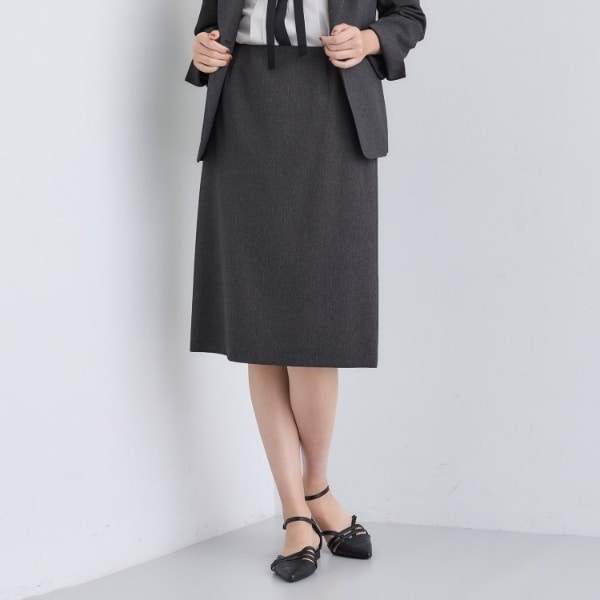 スーツ定番のタイトラインで女性らしくもきちんと見えするひざ下丈で仕上げています。