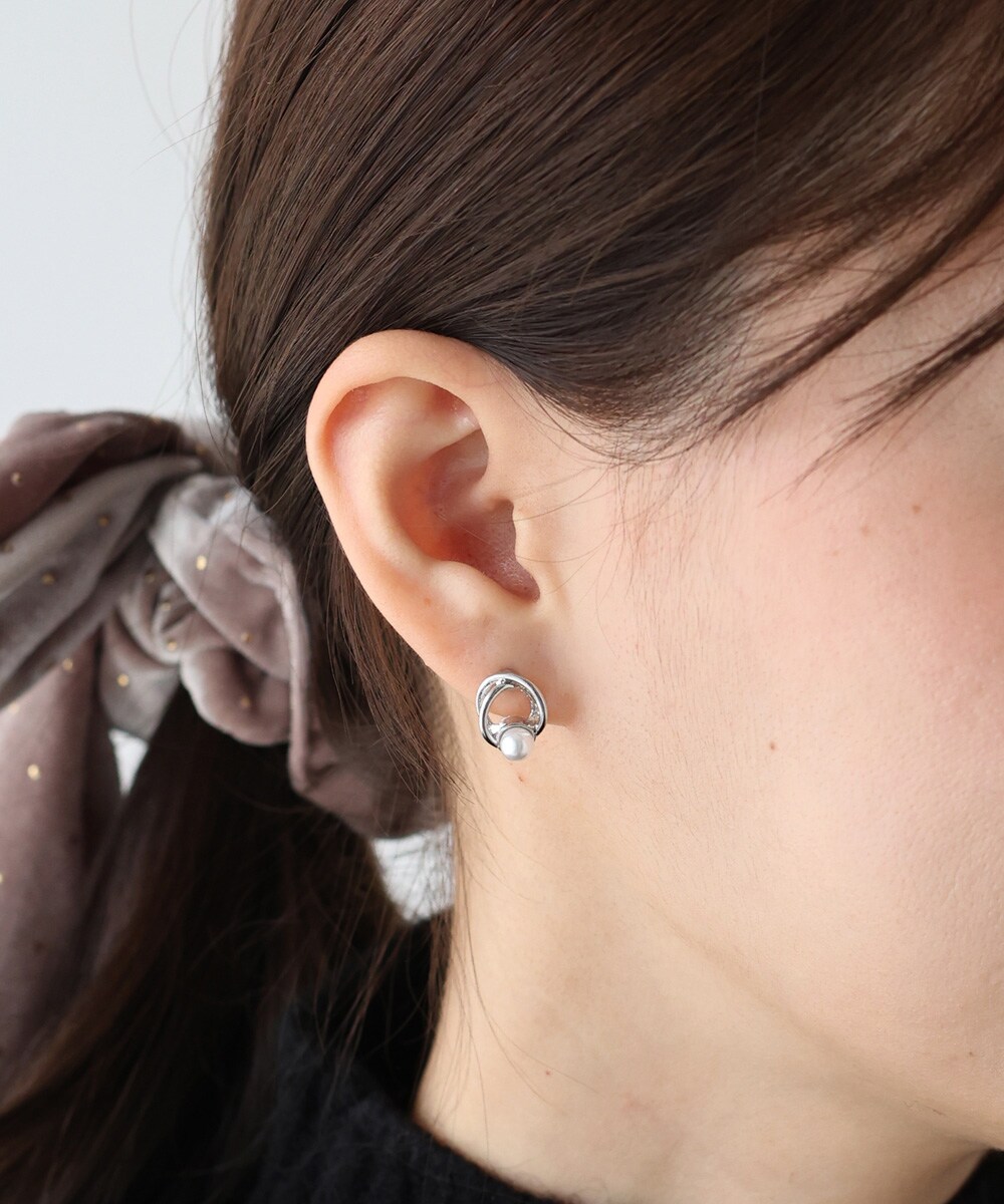 繊細なメタルモチーフにパールをあしらったミニマルなピアス。
