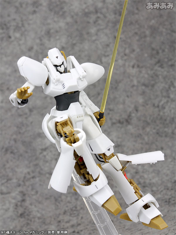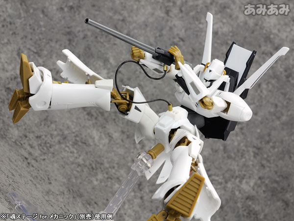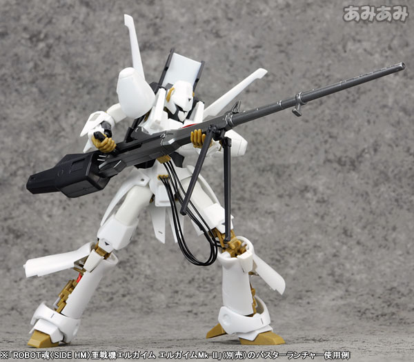 「重戦機エルガイム」より、前半の主役機「エルガイム」が「エルガイムMk-II」に続きROBOT魂で発売! 頭長高を150mmに設定し、エルガイムMk-IIとの身長差を再現しています。脚部のランダムスレートは開閉可能。