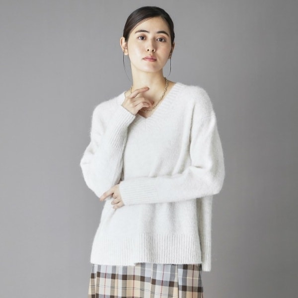 シンプルなスタイリングでニュアンスの出るサイズ感にこだわったVネックプルオーバー。
