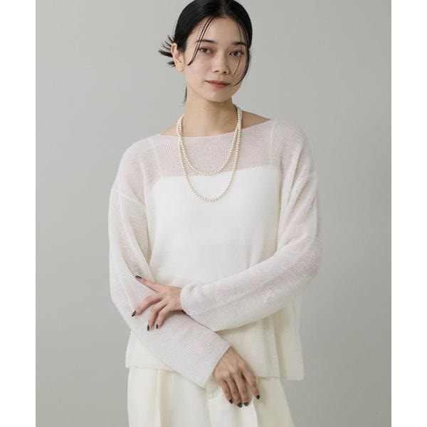 ■デザインふわっとした柔らかい毛足によって表現した、程よいシアー感がポイントのボートネックニット。片畦組織で編み立てられているので、縦目の効果でスッキリした印象に。出来るだけシンプルなデザインにすることで、ニットならではの毛足とシアー感を際立たせた一枚で、秋冬の幅広いスタイリングで活躍してくれる上質なアイテムです。■素材優れた保温性と自然な弾力性のあるウール、繊維が細く滑らかでシルキーな肌触りが特徴のアルパカと耐久性に優れたナイロンを使用し、極細に撚って作られた毛足が繊細な素材です。軽やかで柔らかく綿の様にソフトでなめらかな風合いが特徴です。■サンプル撮影商品画像の商品はサンプルです。実際の商品とはサイズや色味、素材、デザイン等の仕様が若干変更になる場合がございます。■カラーについては、可能な限り実際の商品に近いカラーで撮影をおこなっておりますが、照明の関係により実際の製品とは色味が違って見える場合があります。またパソコン・スマートフォンなどの環境により、若干製品と画像のカラーが異なる場合もございます。現物と画像のカラー差異については返品理由となりませんので、予めご了承ください。■サイズ表記はあくまで目安となります。