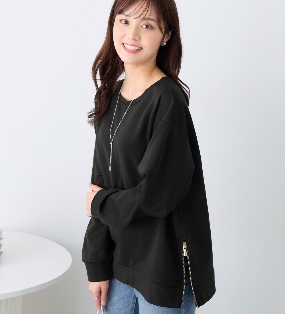 ・サイドジップの開け閉めで表情が変わるほか、インナーやレイヤードコーデのアクセントとしても活躍。