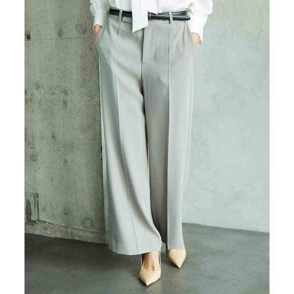 同素材のジャケットやブラウスとのセットアップがおすすめです。日常の通勤スタイルから卒園、卒業や入園、入学などのセレモニーシーン、七五三や学校行事、発表会などお子様のハレの日にも◎フォーマルな場やビジネスシーンに活躍します。ワイドパンツとセットアップなら、堅苦しくない“ちょっと改まった席”にもぴったり。上下にコントラストを効かせた 脚長に見えるバランス感が、スタイルアップ効果が見込めます◎