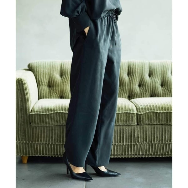 ウエストはゴムギャザーとドローストリングで、着心地やサイズ感を自由に調整できるコージーボトム。素材の落ち感を活かしたゆったりシルエットながら、脚のラインをすっきり見せるデザインで、リラックス感と上品さを両立させたアイテムです。36・40サイズは限定店舗展開です。
