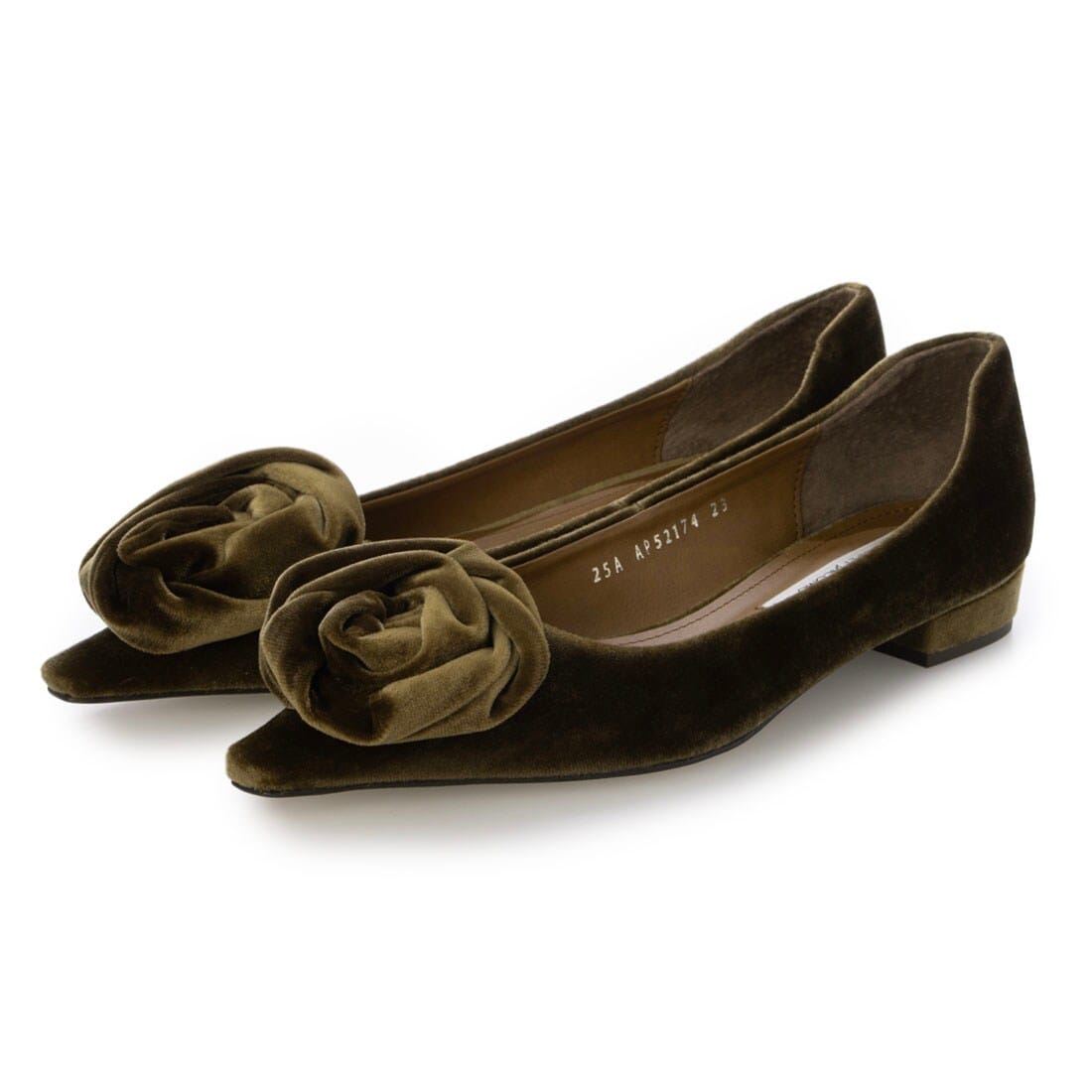 薔薇の色の深みとふっくらしたフォルムをベルベットで表現した技の光る一足。思わず手に触れたくなるような質感です。