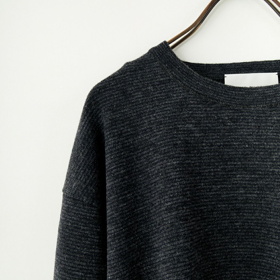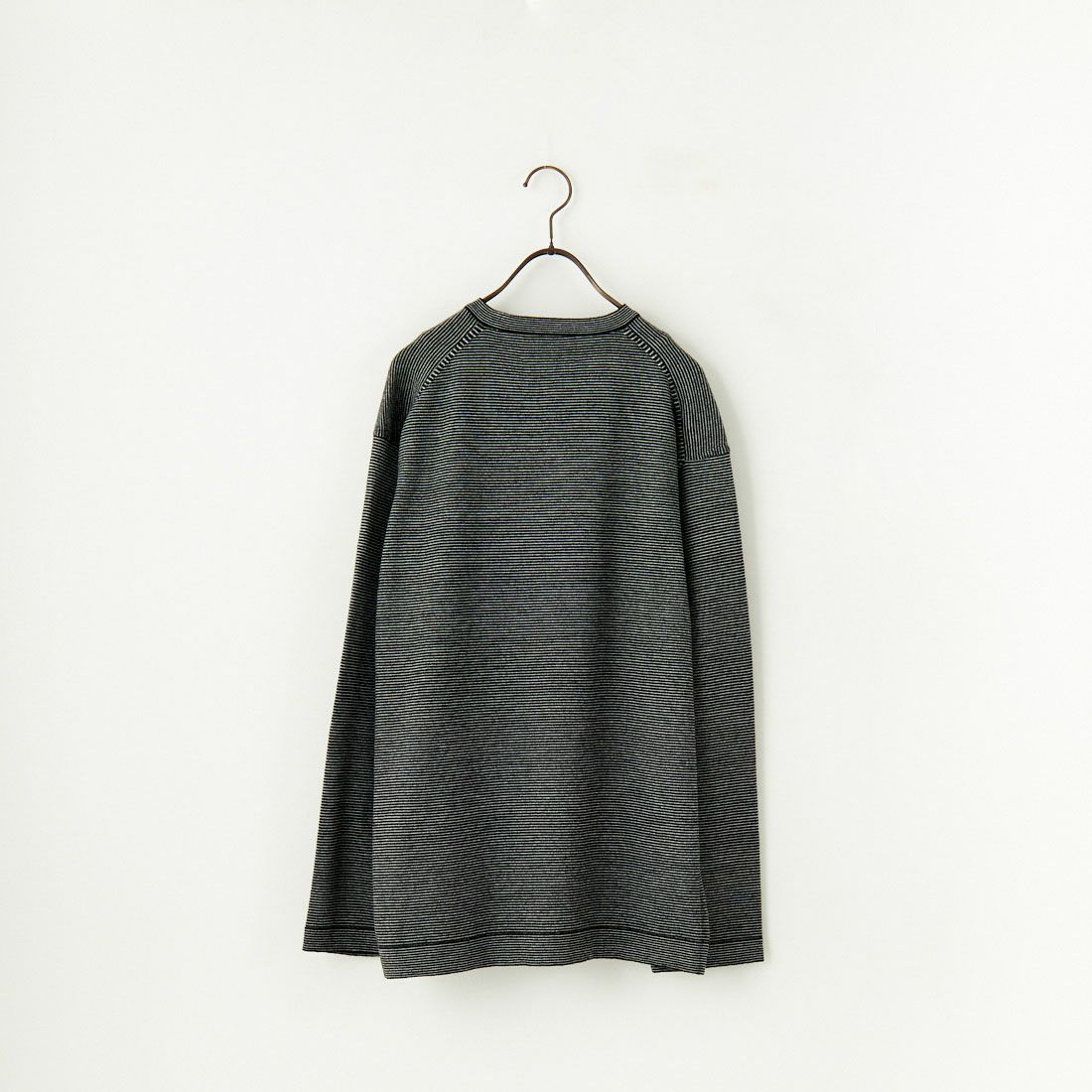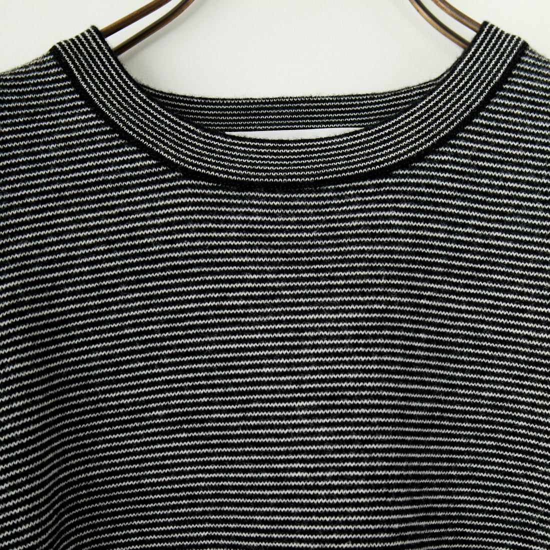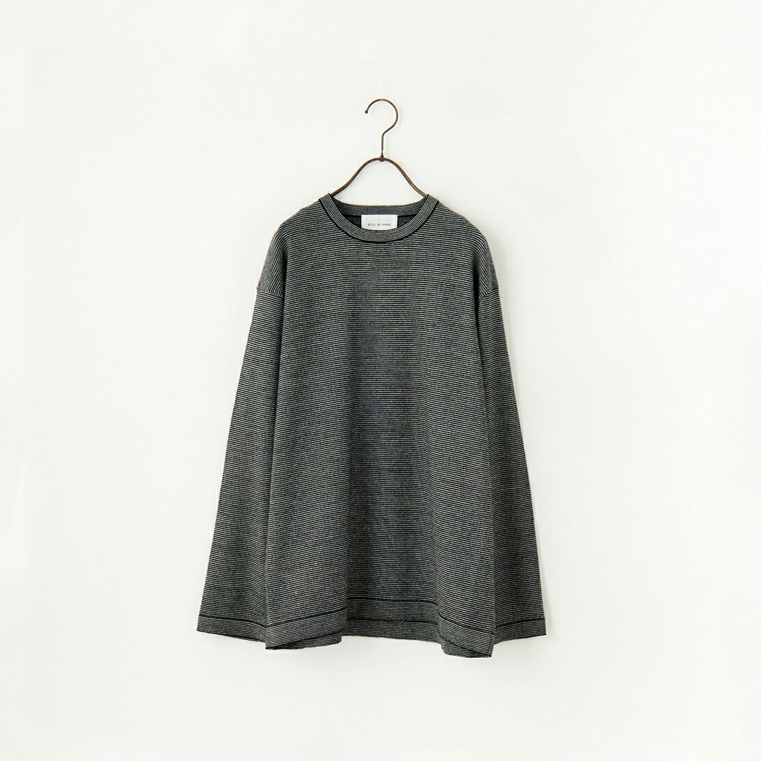 STILL BY HAND[スティルバイハンド]のボーダーニット。無地感覚で使えるピッチの細かいボーダーのニットを14ゲージのファインゲージで作成。中空糸のハイゲージを使用しているので、暖かいのにとても軽い仕上がりです。ロンTの様な感覚で着れるニットのため1枚でもインナーとしても重宝します。