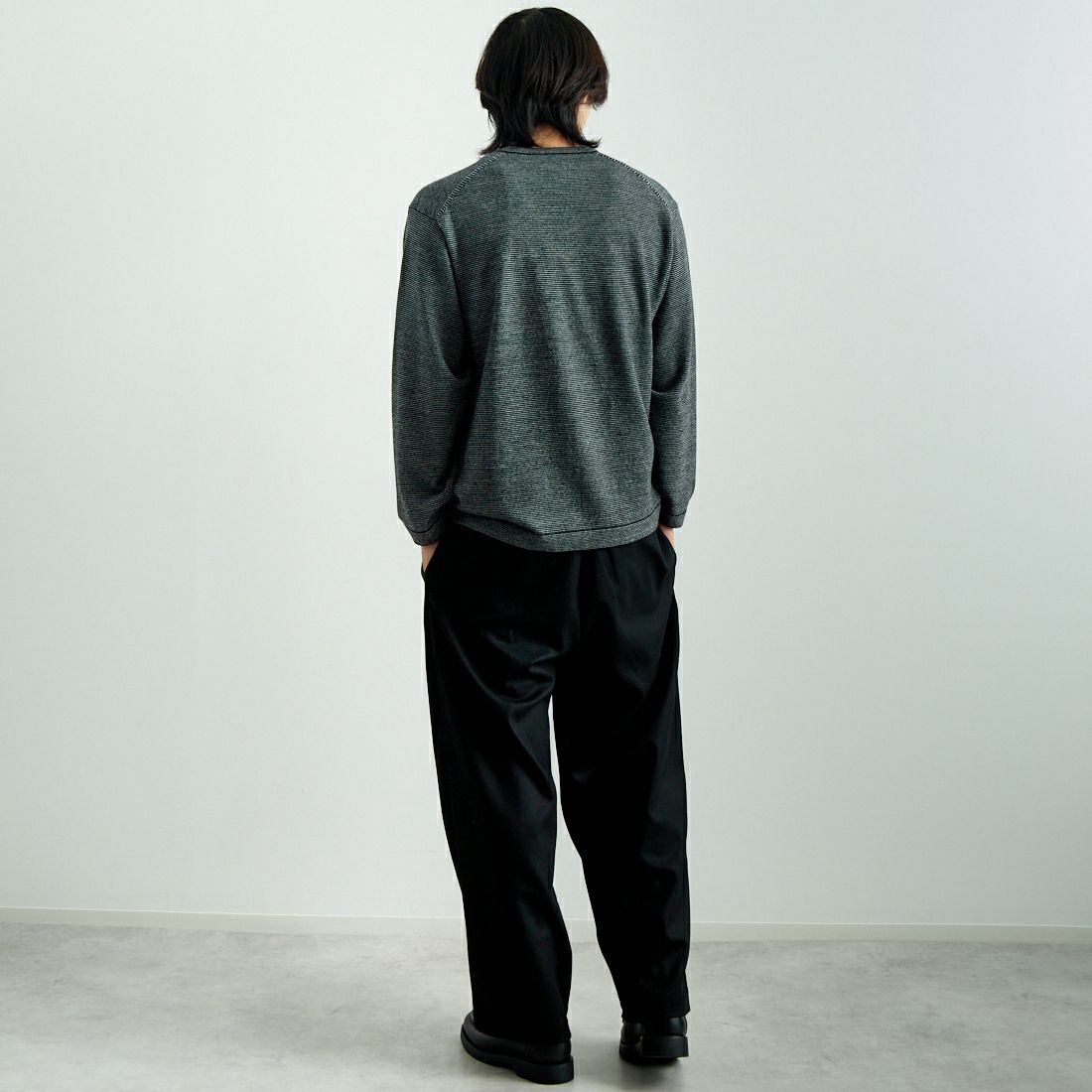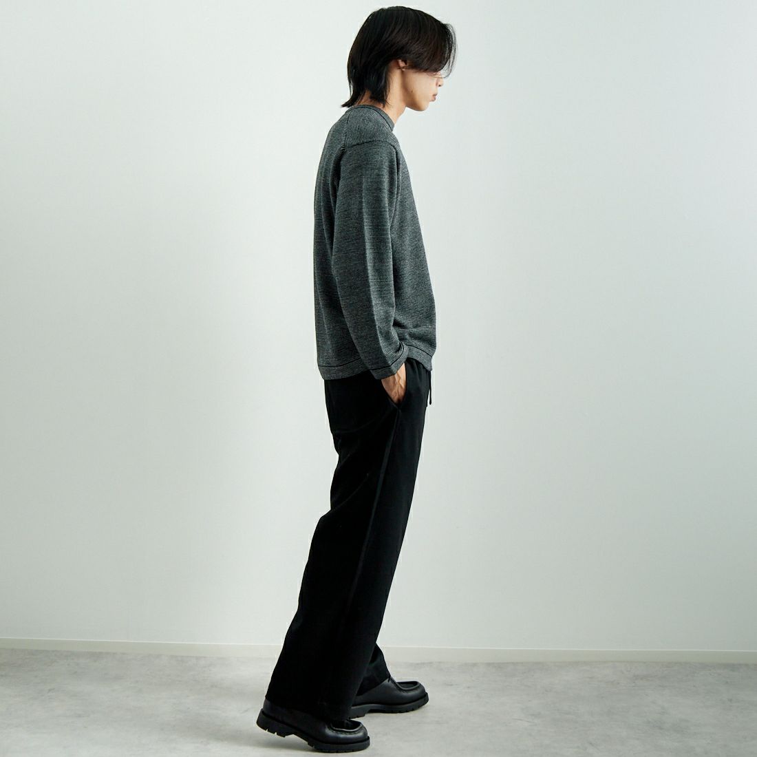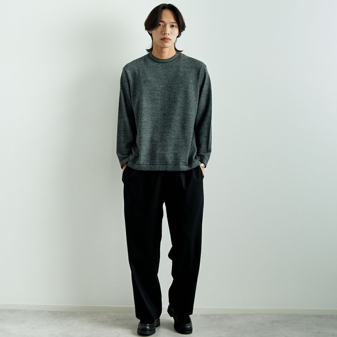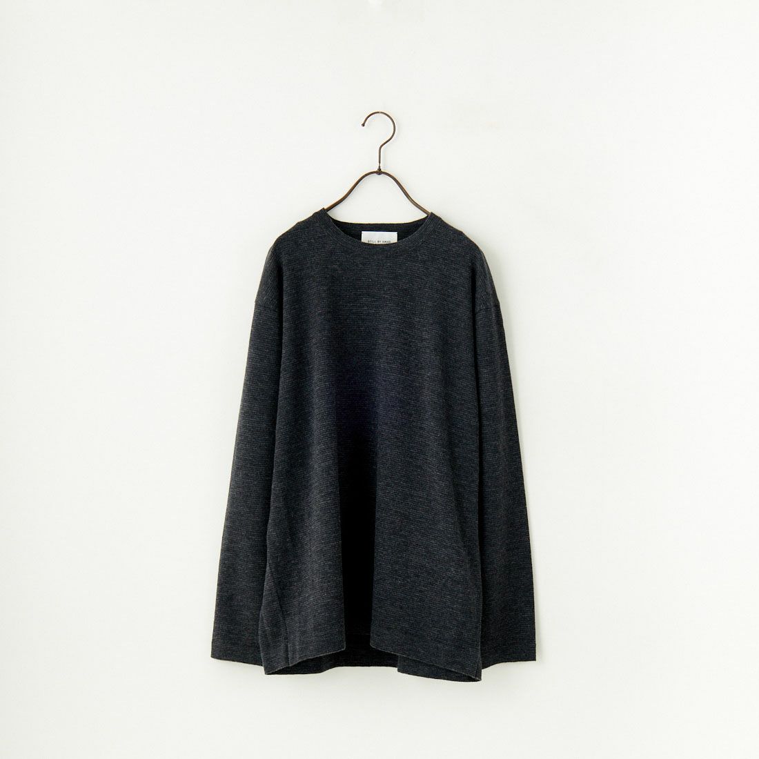 STILL BY HAND[スティルバイハンド]のボーダーニット。無地感覚で使えるピッチの細かいボーダーのニットを14ゲージのファインゲージで作成。中空糸のハイゲージを使用しているので、暖かいのにとても軽い仕上がりです。ロンTの様な感覚で着れるニットのため1枚でもインナーとしても重宝します。