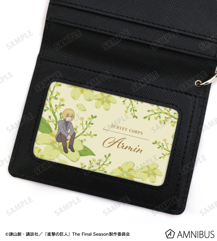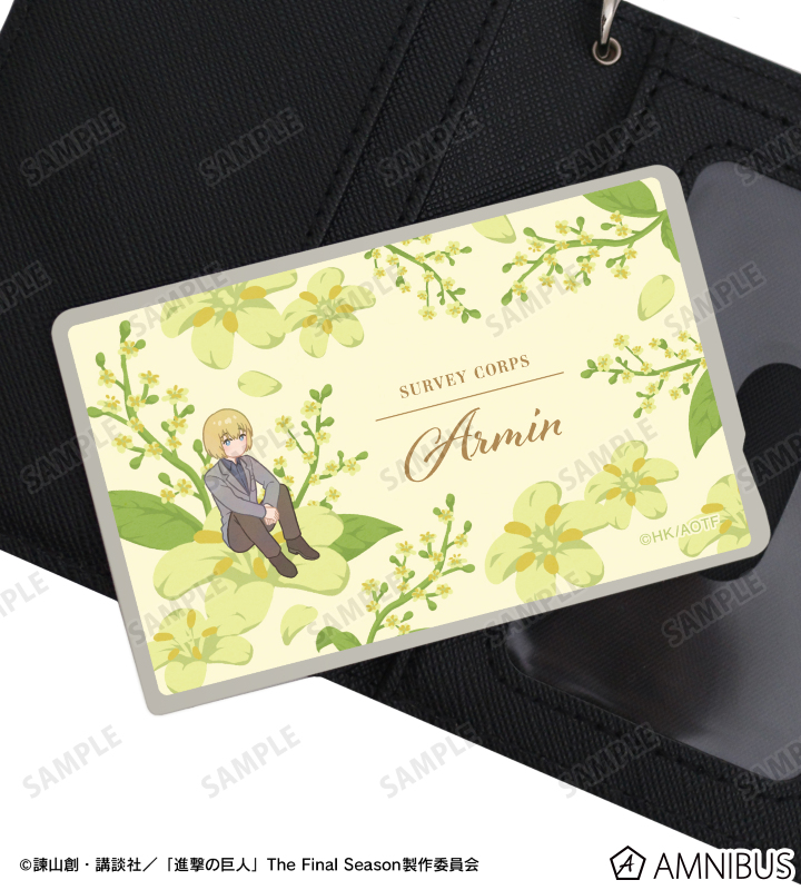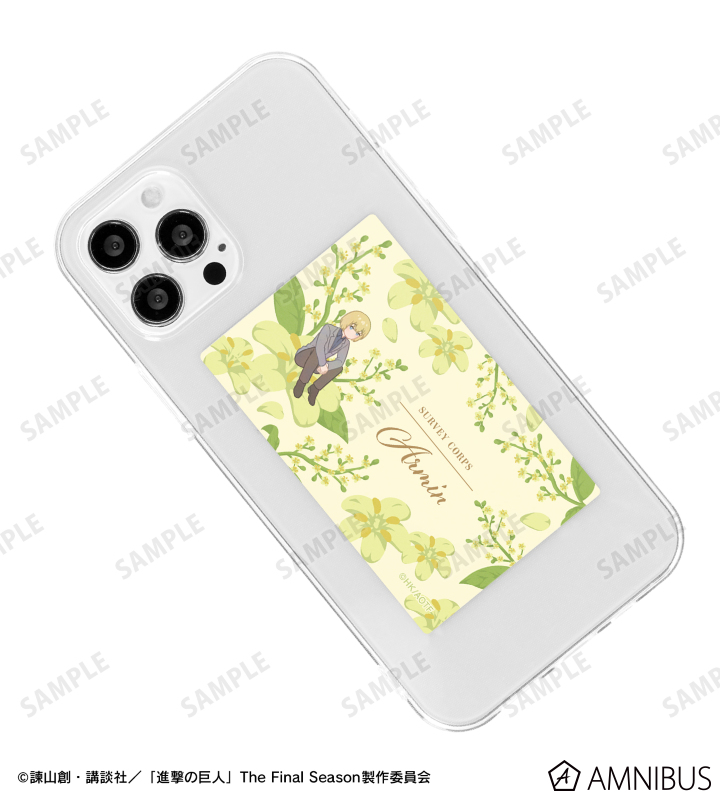 アルミンのイラストをボタニカルデザインに落とし込んで繊細なタッチで新たに描き起こし、カードステッカーに仕上げました。