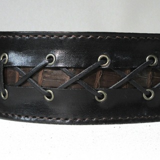 本体の革と同じ素材を用いた革紐を使った丁寧な編み上げが最大の特徴。