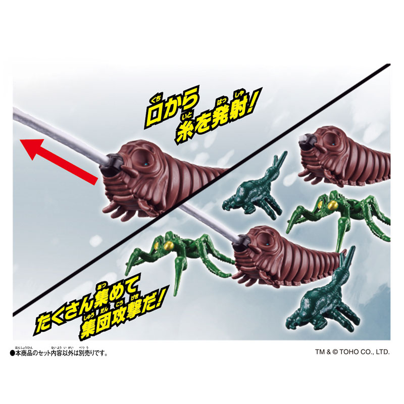 「モスラ(1992)幼虫」には、口から糸を吐くシーンを再現できるギミックが付いています。