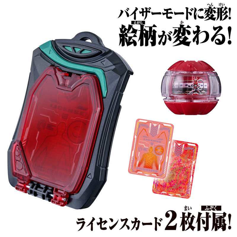 仮面ライダーゼッツが使用する「ゼッツギアシリーズ DXゼッツライセンス」が登場! パネルを開いてバイザーモードに変形できます。付属のカードを入れると絵柄が変化! 付属の「電王カプセム」と別売りのゼッツドライバーと連動することでオリジナル音声遊びを楽します。