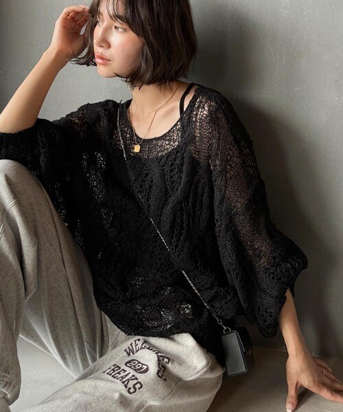 透かし編みケーブルオーバーサイズニット