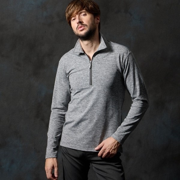 裏起毛のジャージー素材を使用した長袖のハーフジップポロ。