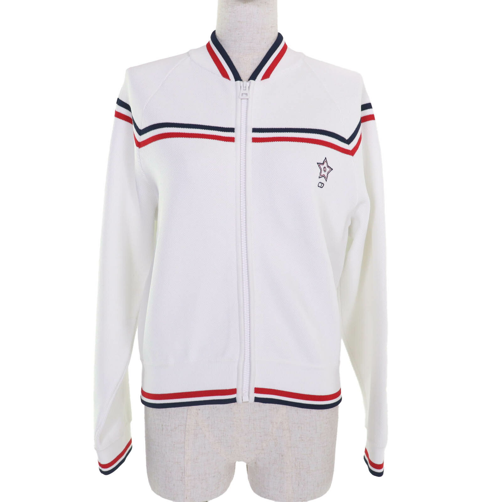 極美品☆Christian Dior クリスチャンディオール 144V50AM350 JA DIOR PARIS クロップド丈 ボンバー ジャケット ネイビー ホワイト 44 イタリア製 正規品 レディース【中古】