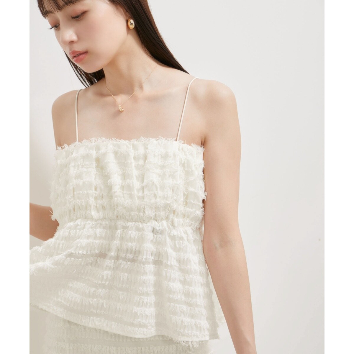 【華やかなレイヤードが楽しめるフリンジキャミソール】
