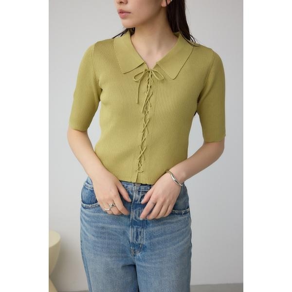 ■レースアップ5分袖ポロカラーニット■ポイントトレンドのポロカラーデザインのレースアップニットです。■ディティールシンプルなシルエットですがフロント部分のレースアップがアクセントになる一着です。襟元の抜け感が女性らしさを演出してくれます。レースアップデザインですが、フロントに隠し前立てを施しているので、インナーが見えない仕様になっています。250ISC70-288B レースアップポロカラーニットの5分袖バージョンになります。■スタイリングデニムに合わせてもカジュアルになりすぎないのでレディライクな着こなしになります。■生地清涼感のある強撚素材と、ストレッチの効いた糸をプレーティングして編み立てたニットです。透け感:なし裏 地:なし伸縮性:あり光沢感:なし[注意事項]※画像の商品はサンプルです。実際の商品と仕様、加工が若干異なる場合があります。※画像の商品は光の照射や角度、お使いのモニター環境により、実物と色味が異なる場合がございます。※着用、お取り扱いの際は、アテンションタグをご確認ください。