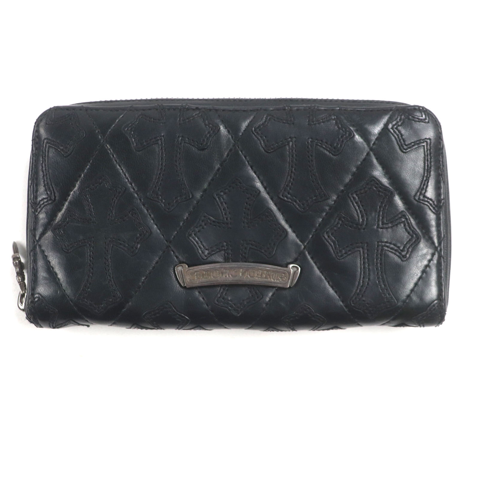 美品□CHROME HEARTS クロムハーツ REC F ZIP レザー 3セメタリークロスパッチ ラウンドジップ 長財布 ロングウォレット ブラック メンズ【中古】