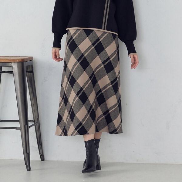 バイアスチェック柄のニットスカートです。