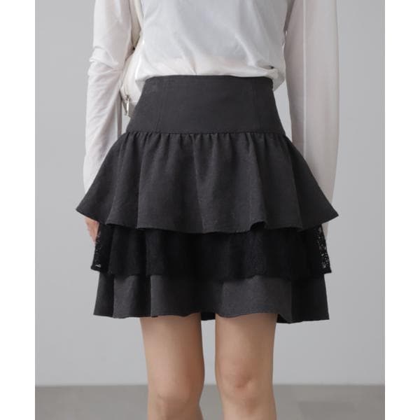 オールシーズン使えるティアードミニスカート。膨らみと凸凹のあるポコポコとしたストレッチ性のある生地を使用。ボーダーラインに凸凹の幅違いがあり、細いタイプから太いタイプまで入ることでメリハリがついて表情が出ています。生地に特徴があるため、形は合わせやすいナローマキシ丈にし、裾はメロー始末を入れて軽く仕上げています。スウェットトップスと合わせて、デイリーカジュアルに着ていただくスタイリングがおススメ。長いシーズン着られるので、オーバーシャツコーデもイチオシです。※モデルの着用画像の場合、光の当たり具合により、実際の色味と異なって見えることがございます。色味は、商品単体の画像をご参照ください。