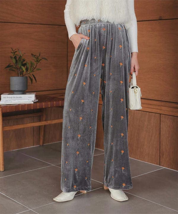 ロゴ刺繍/ボトム/M/コットン/GRY/総柄