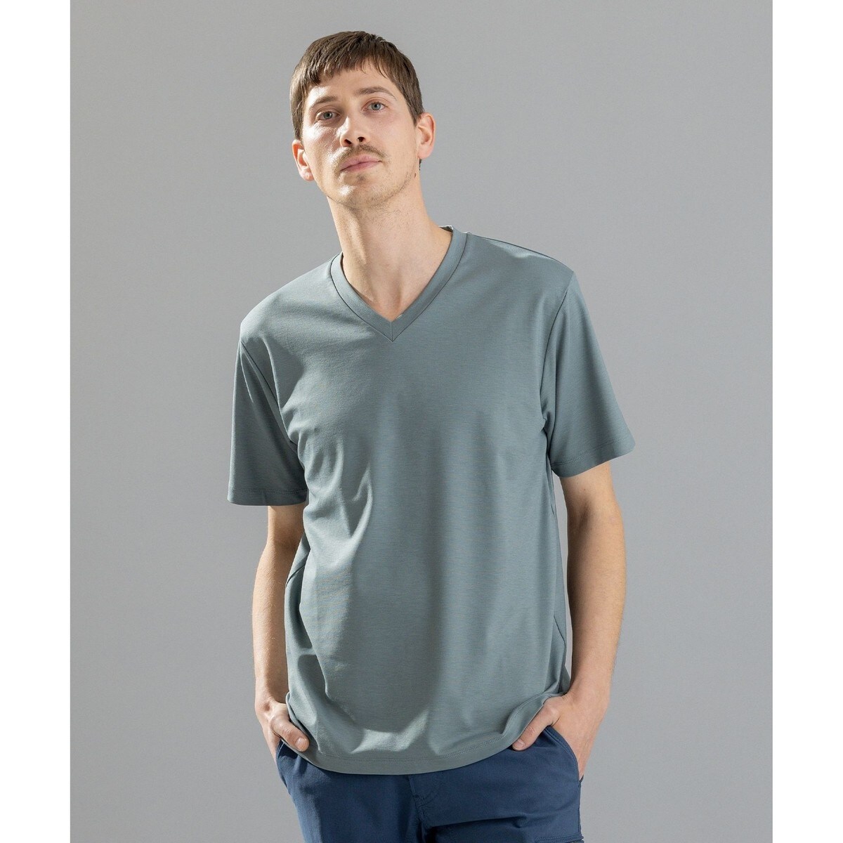 シーンを問わず着まわせるシンプルVネックTシャツ。上品な光沢とストレッチ性で抜群な着心地。トレンドカラーのピンク系、グリーン系はアクセントに最適。