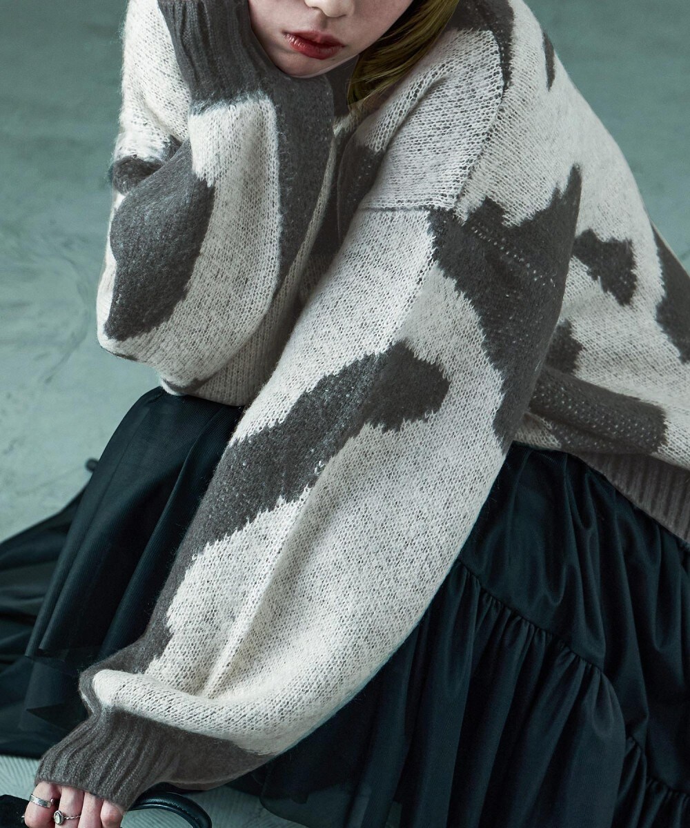 Fashion Letter ファッションレター インパクト抜群、これにデニム合わせだけでコーデが決まるマーブル柄ニットプルオーバー。