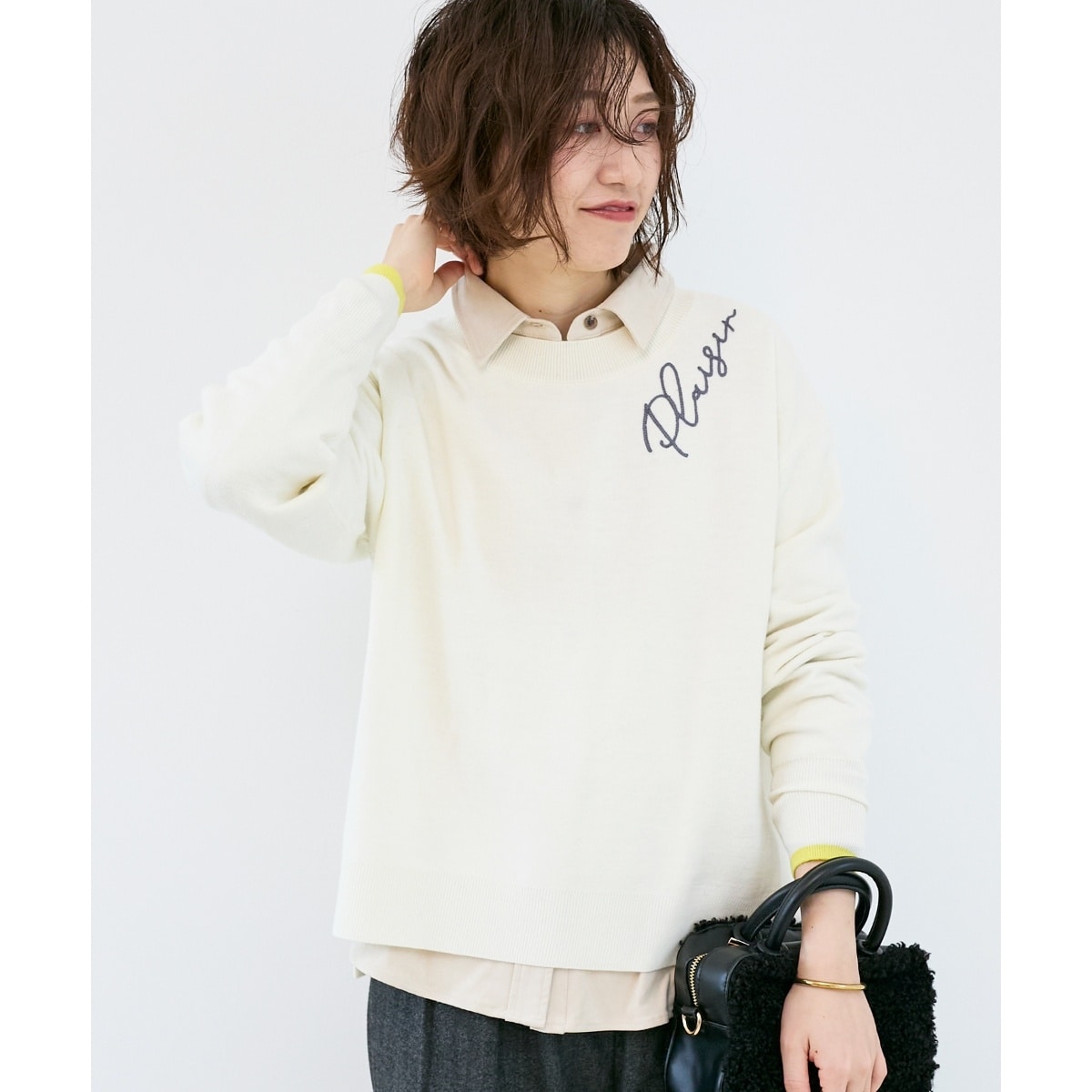ネックのワンポイントでさりげなく個性を演出できる、おとなカジュアルの新定番ニットです。