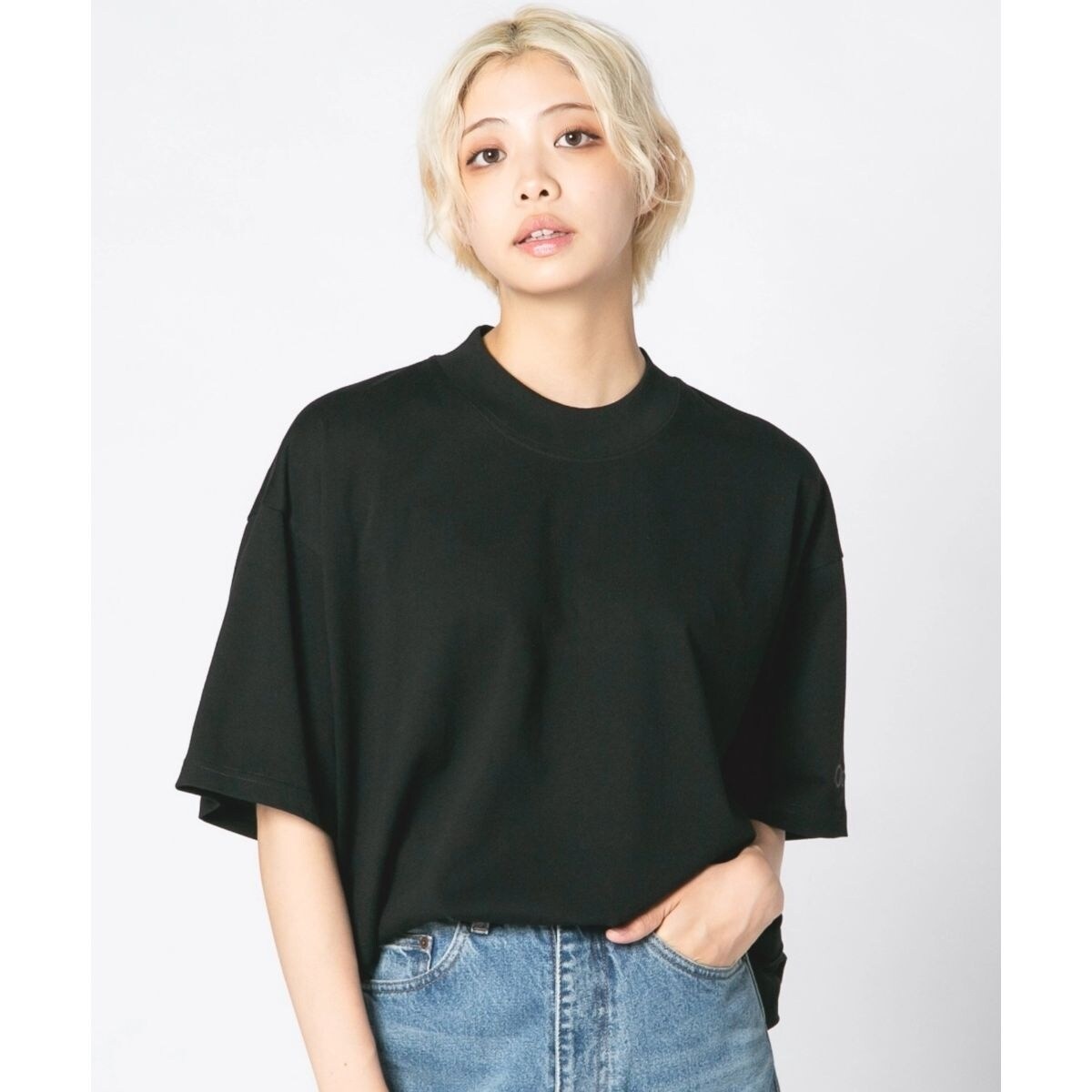 上品さ、クラシカルさを漂わせてくれるモックネックT。