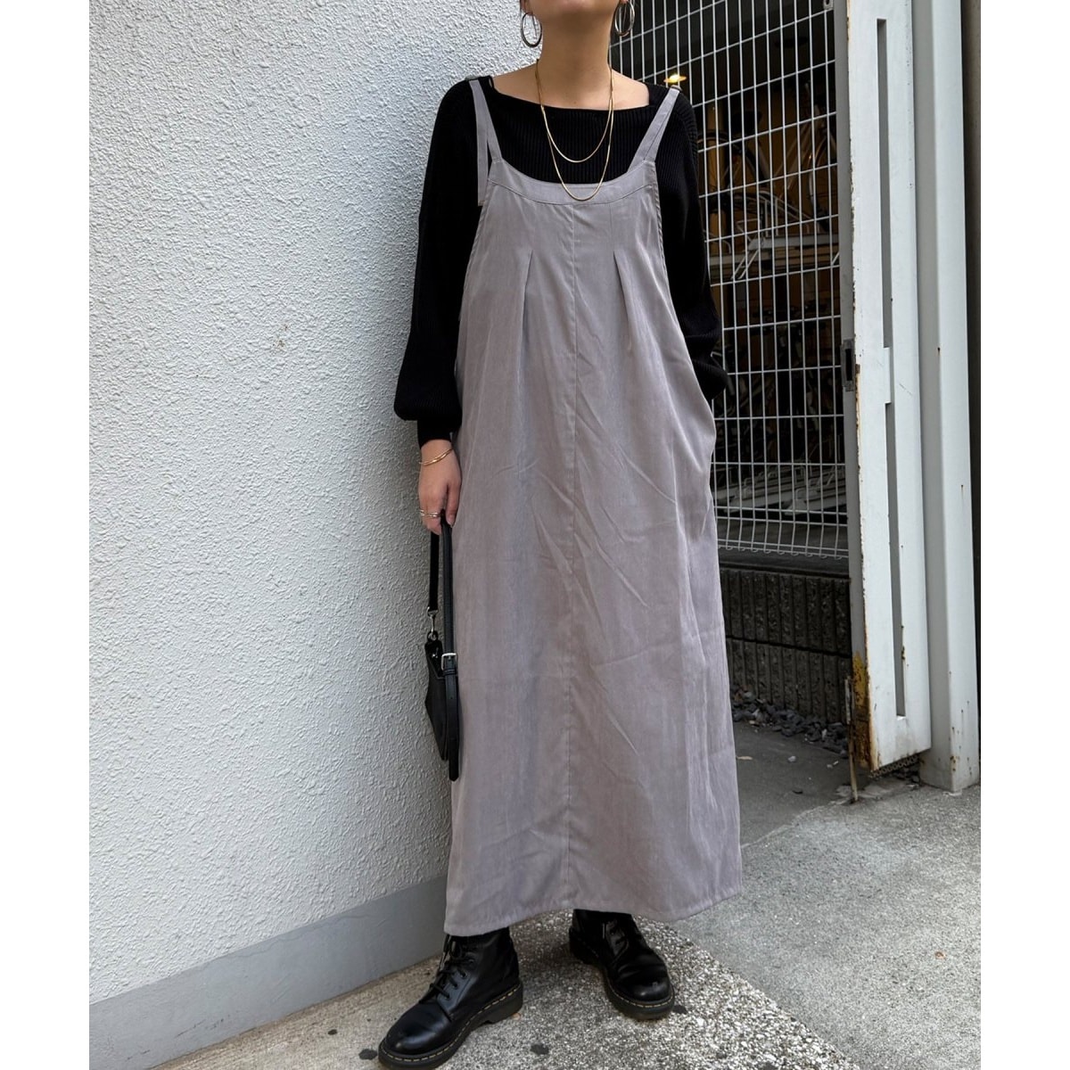 ほんのり起毛感のあるピーチツイル素材を使用した、季節感のあるジャンパースカート。