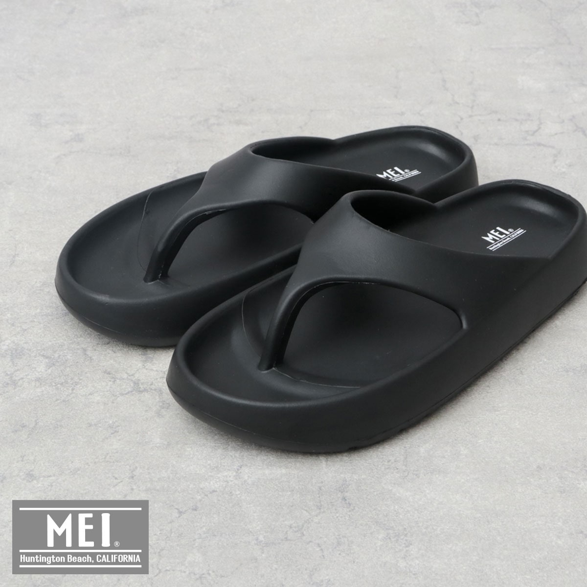 幅広いコーデに合わせやすい、超シンプルデザインのトングサンダル。 “MEI”ロゴプリントがシンプルデザインのさり気ないワンポイントに。