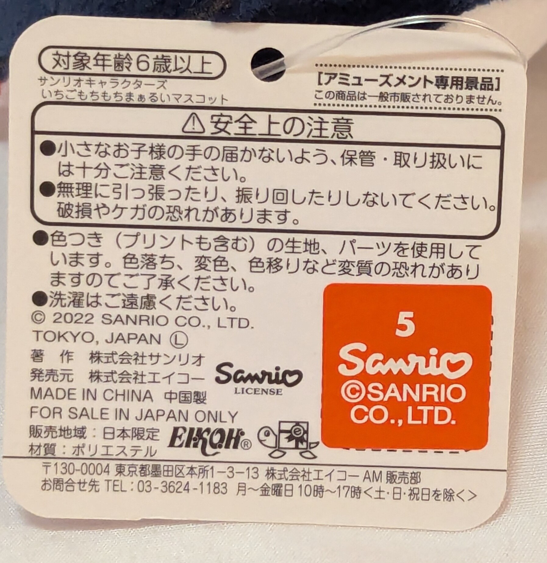 2022年 サンリオキャラクターズ クロミ マスコット ぬいぐるみ ゴム紐ストラップ 未使用品 現状品 [エイコー 非売品 日本限定 チャーム]