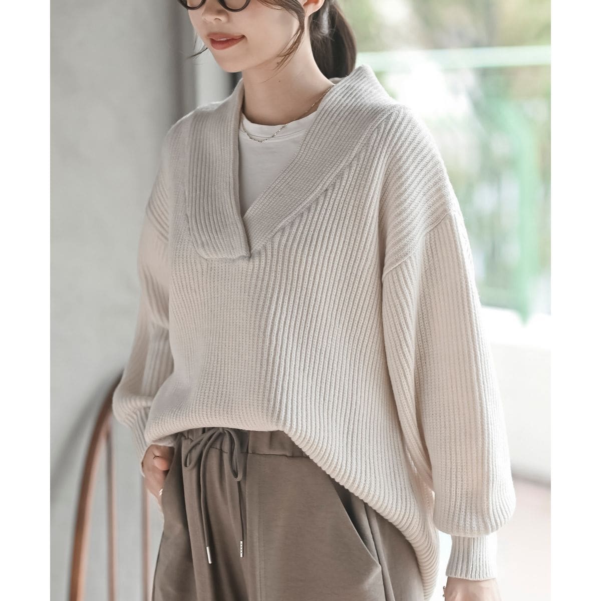 23区 オンワード樫山 ショールカラープルオーバーニット リブ編み М