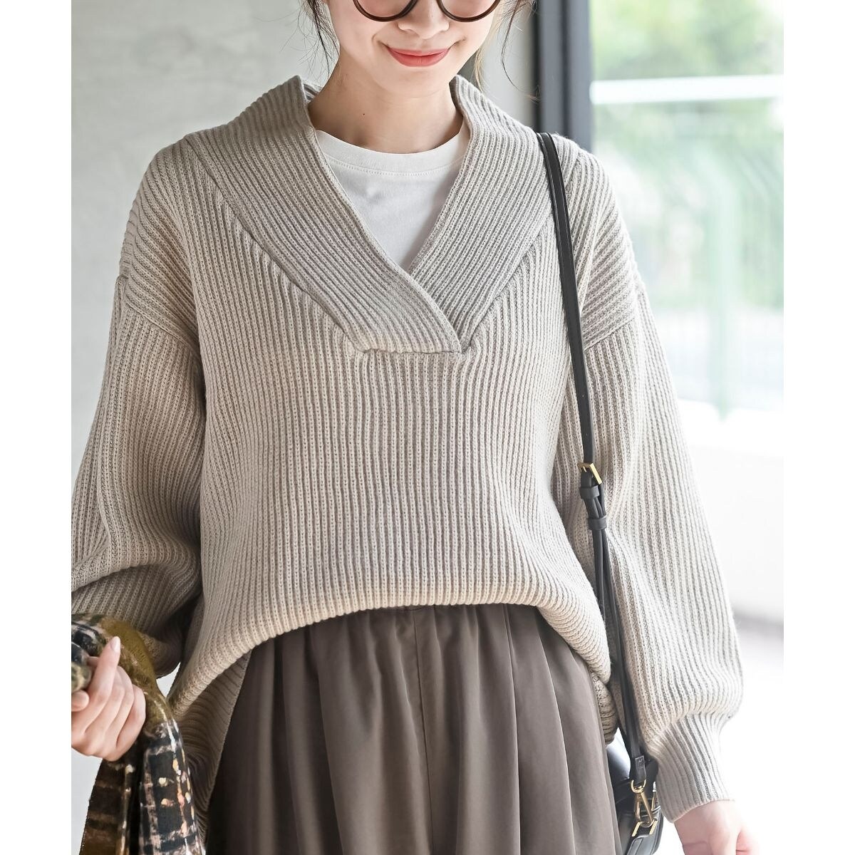 IENA イエナ ファインウール ショールカラーリブプルオーバー