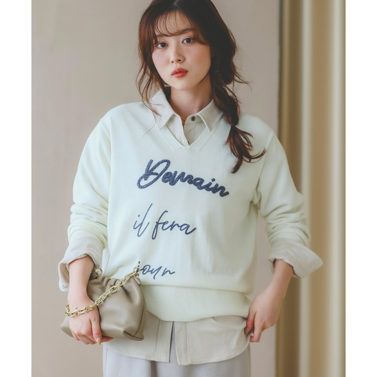 フレンチムード漂うロゴ刺繍が印象的なVネックニット。