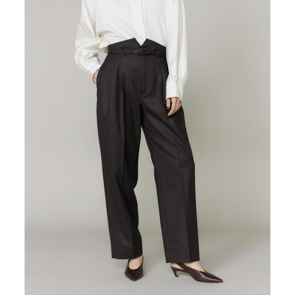 ■デザインやや丸みのあるフォルムが新鮮なハイウエストパンツ。カッティングでシルエットを出したパターンにこだわった一着です。中央には縦のラインを強調したセンタープレスを入れ、美しいシルエットの中にもきちんと感が見えるデザインに仕上げています。共生地のベルトもクラッシックな印象にしています。■素材バルベリス・カノニコは1663年より羊毛生産をはじめており、創業350年という圧倒的な歴史を誇る生地メーカーです。カノニコの生地は艷やかで発色がよく滑らかな肌触りのイタリアらしい生地で、多くの有名ブランドに採用されています。世界で最も売れている生地と言われるだけあり、カノニコを使用した生地は多くのセレクトショップやスーツショップで取り扱われています。・裏地あり・ポケットあり ・共地ベルト付き■下げ札サイズ表記1=(S/7号)2=(M/9号)3=(L/11号)■サンプル撮影商品画像の商品はサンプルです。実際の商品とはサイズや色味、素材、デザイン等の仕様が若干変更になる場合がございます。■カラーについては、可能な限り実際の商品に近いカラーで撮影をおこなっておりますが、照明の関係により実際の製品とは色味が違って見える場合があります。またパソコン・スマートフォンなどの環境により、若干製品と画像のカラーが異なる場合もございます。現物と画像のカラー差異については返品理由となりませんので、予めご了承ください。■サイズ表記はあくまで目安となります。